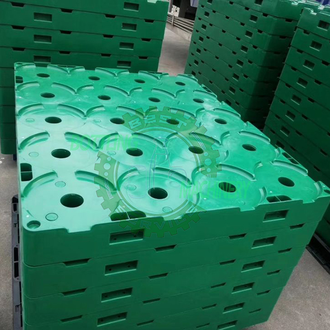 Bottled water plastic pallet: It is a plastic pallet specializing in square bottled water, with rigorous structure and quality assurance. The weight of the pallet is 16.2KG. It is a plastic pallet made of high-density polyethylene (HDPE). The size of the bottled water pallet is 1360*1095*127.6mm, single layer can hold 16 barrels and 20 barrels, 3 to 4 layers can be placed, suitable for mechanical forklifts and ground cattle, dynamic load is 1000kg, static load is 4000kg.